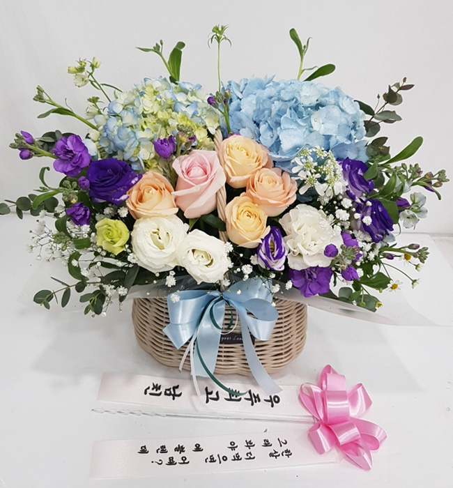 수국 장미 바구니