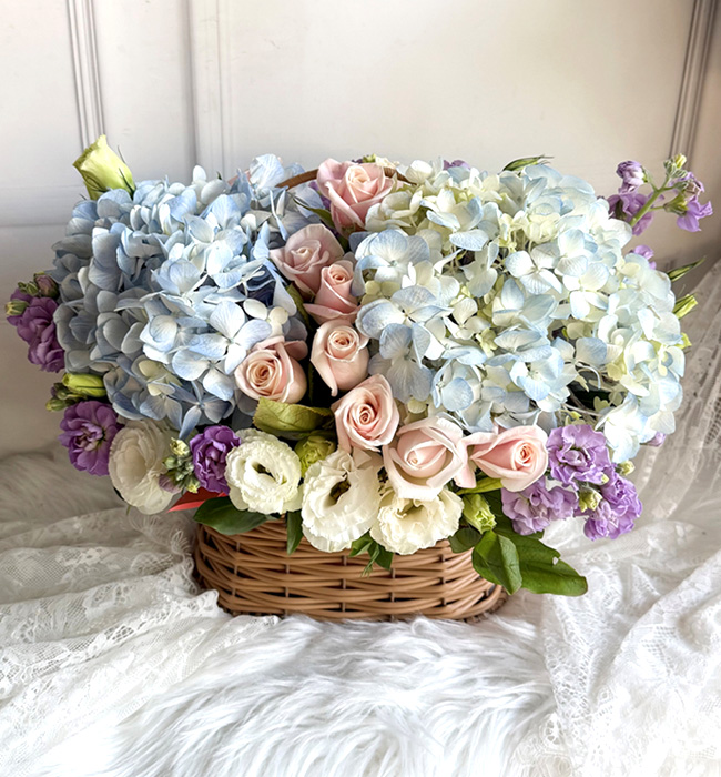 수국 장미 바구니