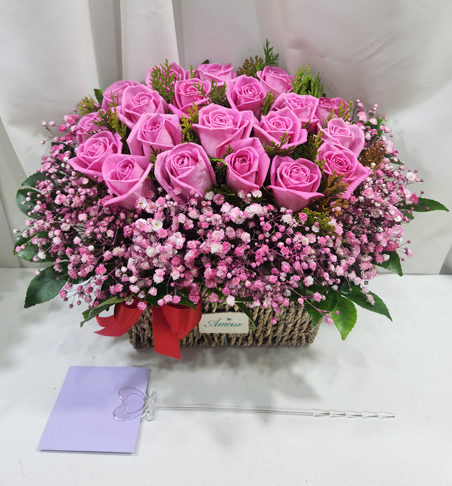 TV소개된 그 칼라안개와 핑크장미 꽃바구니
