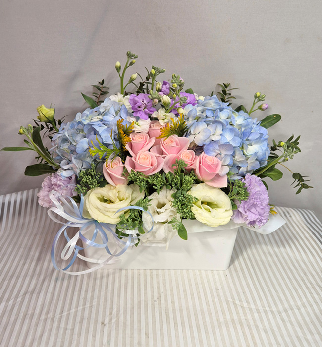 수국 장미 바구니