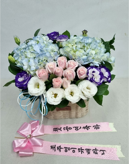 수국 장미 바구니