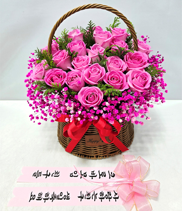 TV소개된 그 칼라안개와 핑크장미 꽃바구니