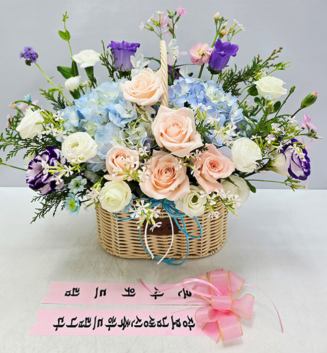 수국 장미 바구니