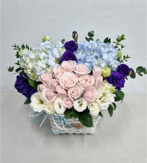 수국 장미 바구니