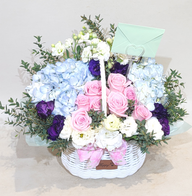 수국 장미 바구니