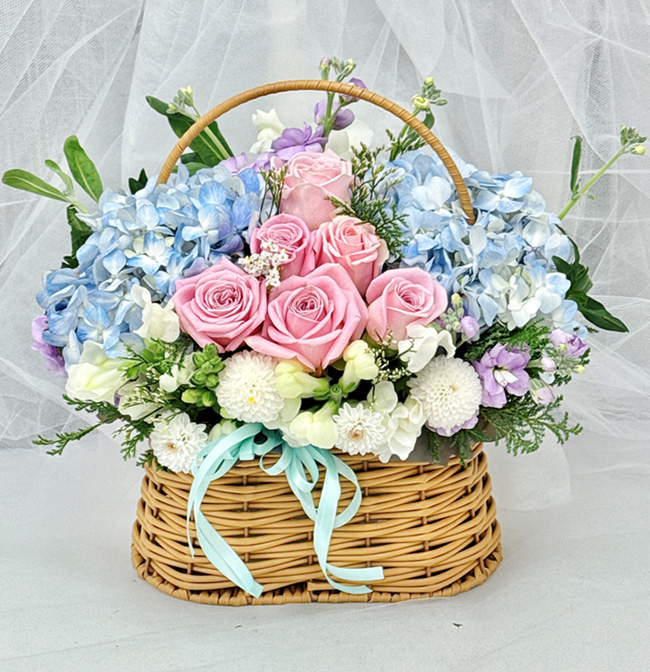 수국 장미 바구니
