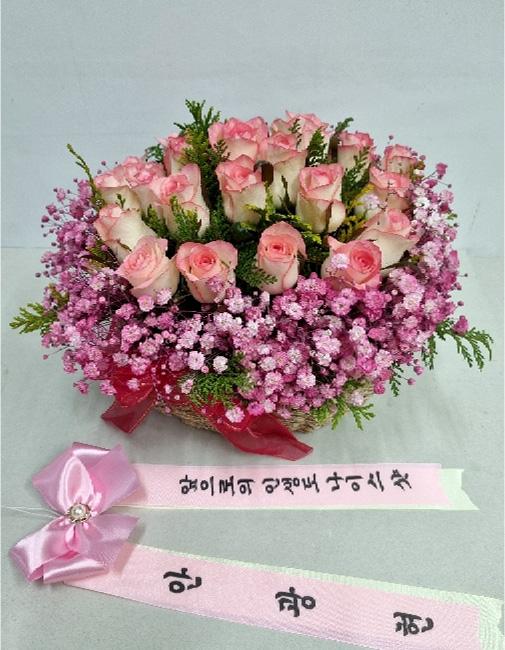 TV소개된 그 칼라안개와 핑크장미 꽃바구니