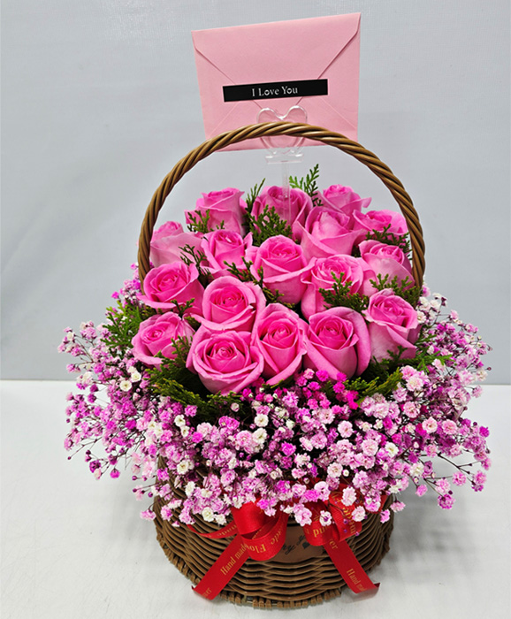 TV소개된 그 칼라안개와 핑크장미 꽃바구니