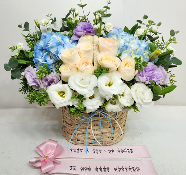 수국 장미 바구니