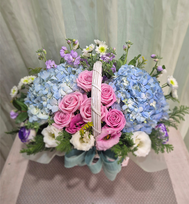 수국 장미 바구니
