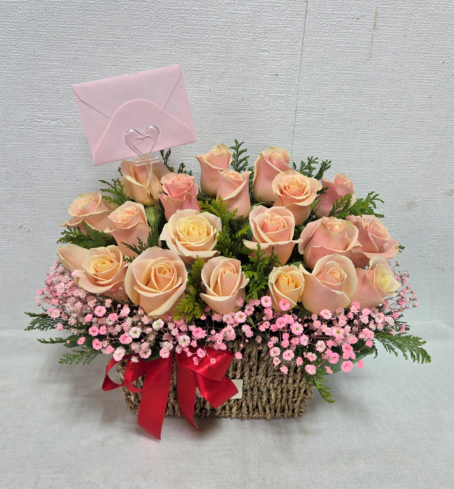 TV소개된 그 칼라안개와 핑크장미 꽃바구니
