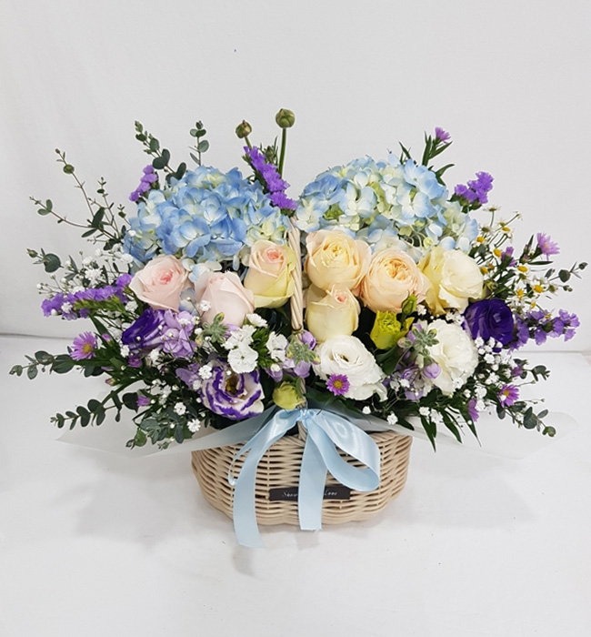 수국 장미 바구니