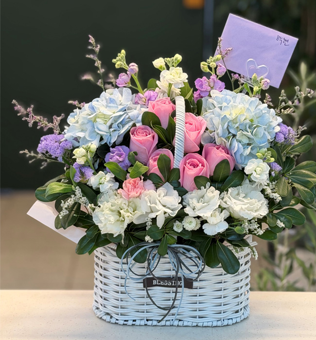 수국 장미 바구니