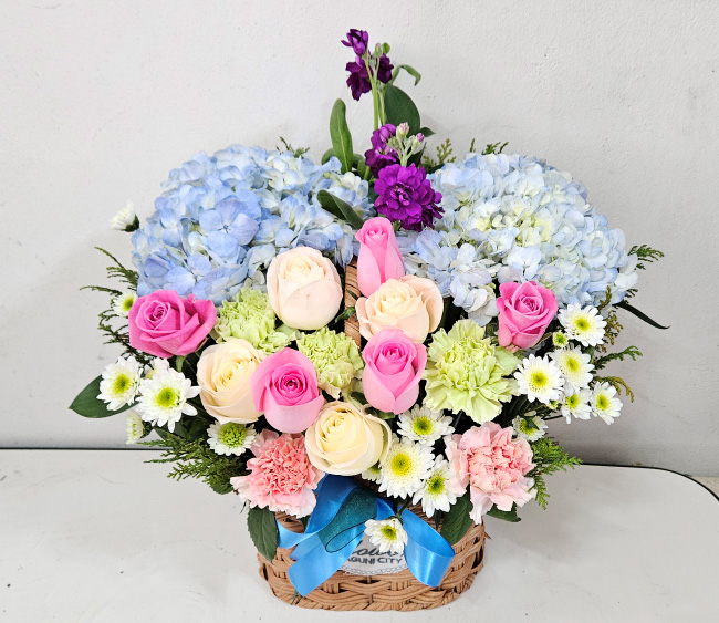 수국 장미 바구니