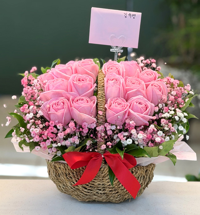 TV소개된 그 칼라안개와 핑크장미 꽃바구니