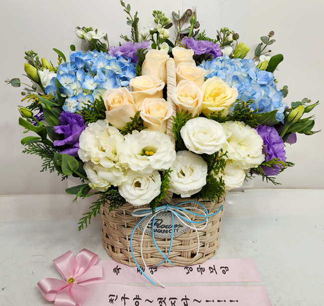 수국 장미 바구니