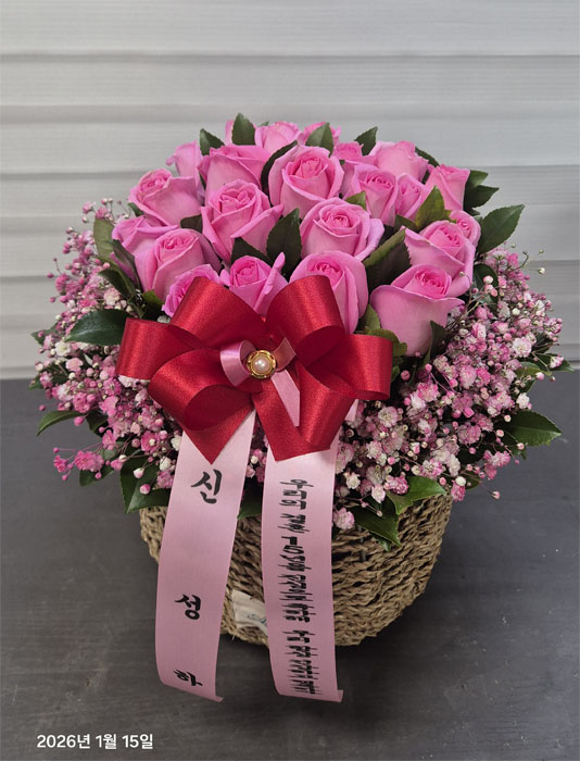TV소개된 그 칼라안개와 핑크장미 꽃바구니