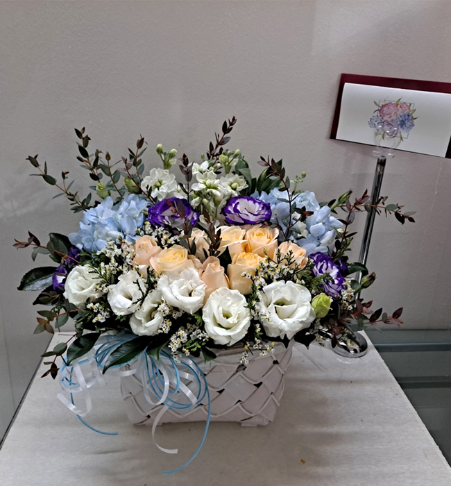 수국 장미 바구니