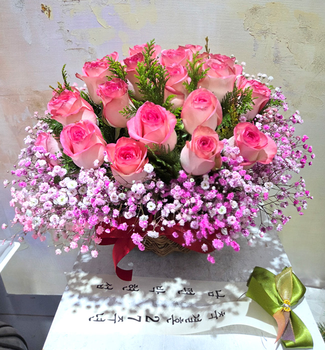 TV소개된 그 칼라안개와 핑크장미 꽃바구니