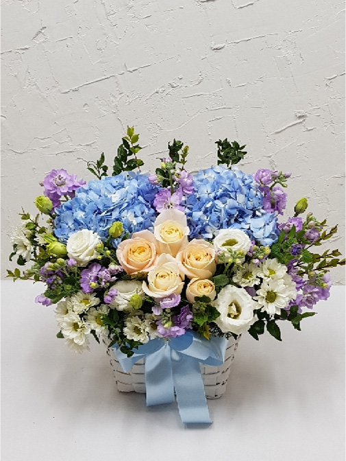 수국 장미 바구니