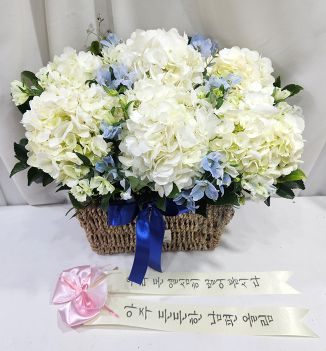 순백의 수국바구니