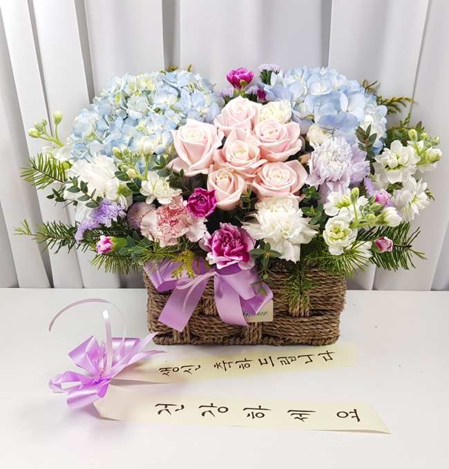 수국 장미 바구니