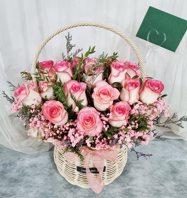 TV소개된 그 칼라안개와 핑크장미 꽃바구니