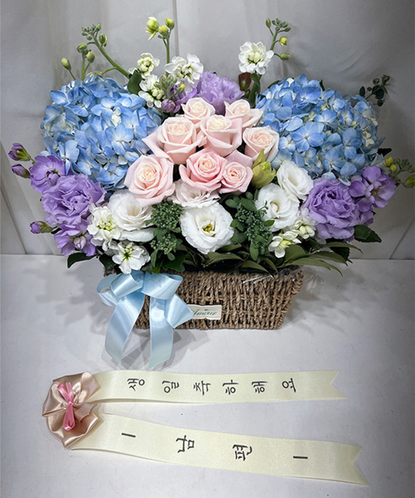 수국 장미 바구니