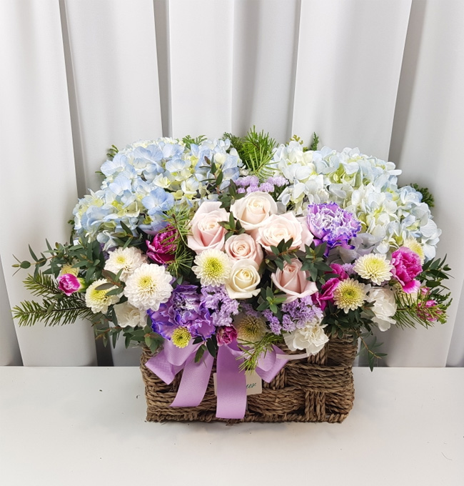 수국 장미 바구니