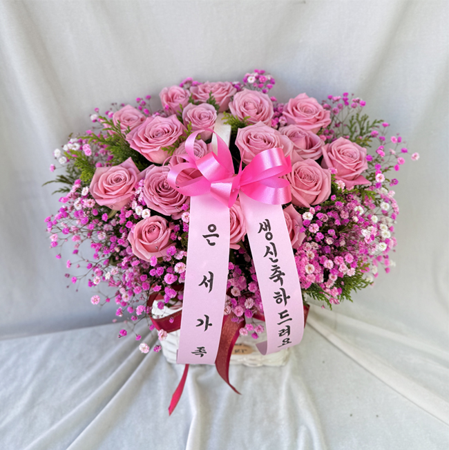 TV소개된 그 칼라안개와 핑크장미 꽃바구니