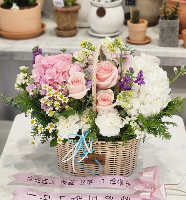 수국 장미 바구니