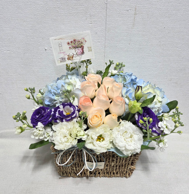 수국 장미 바구니