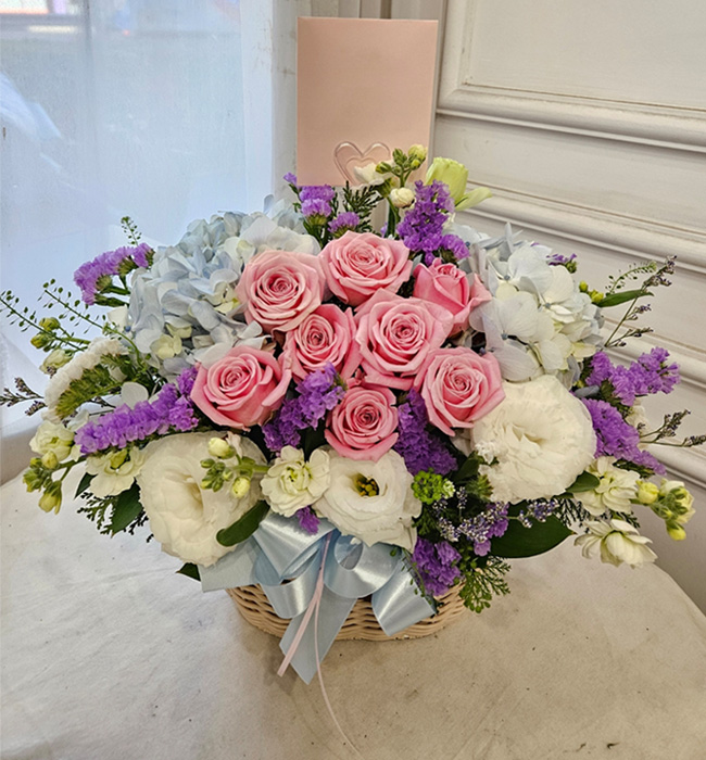 수국 장미 바구니