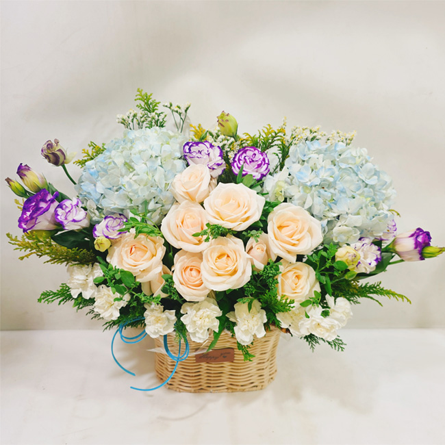 수국 장미 바구니