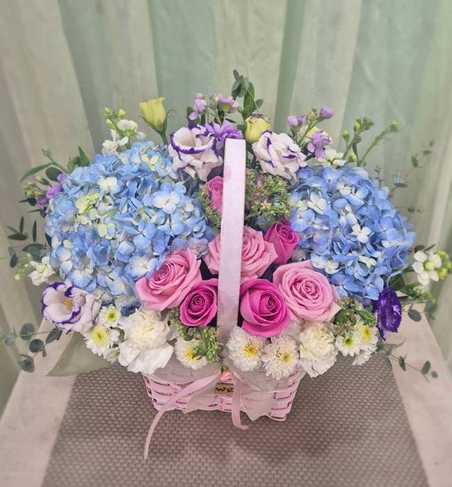 수국 장미 바구니