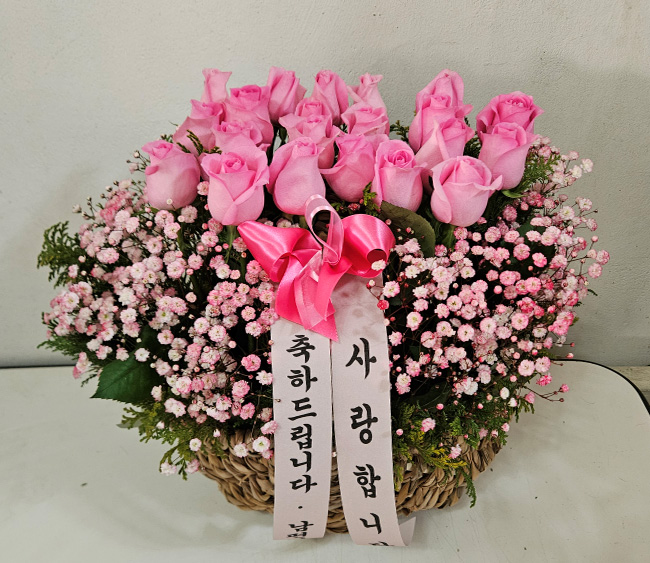 TV소개된 그 칼라안개와 핑크장미 꽃바구니