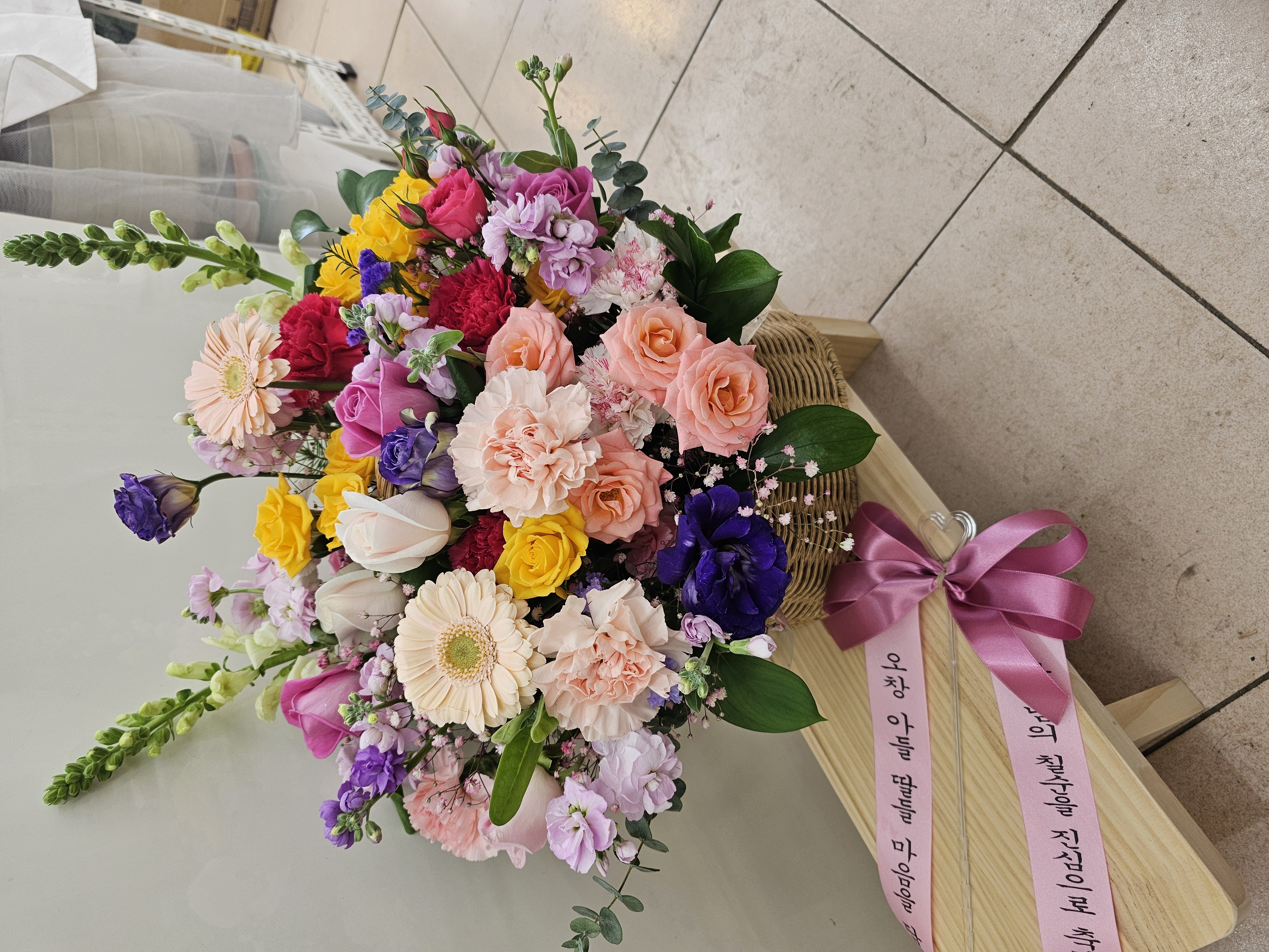 소중한 후기 남겨주셔서 진심으로 감사드립니다. 아버님의 뜻깊은 칠순을 축하드리는 자리에 저희 꽃바구니가 기쁨을 더해드린 것 같아 정말 뿌듯합니다. 받으신 분께서도 만족하셨다니 제작한 보람을 느낍니다. 앞으로도 정성을 다해 준비해 드리겠습니다. 다시 한번 아버님의 칠순을 진심으로 축하드리며, 늘 행복하시길 바랍니다!