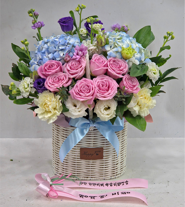 수국 장미 바구니