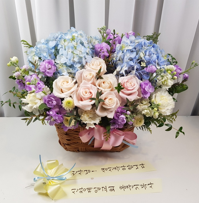 수국 장미 바구니