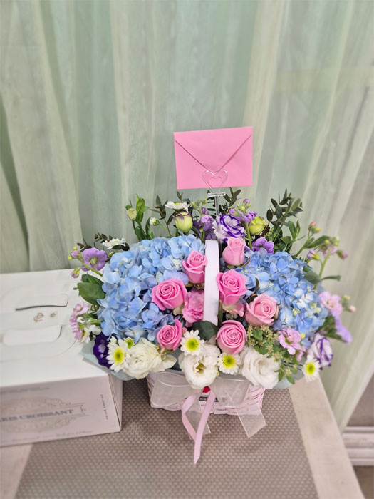 수국 장미 바구니