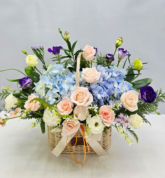 수국 장미 바구니
