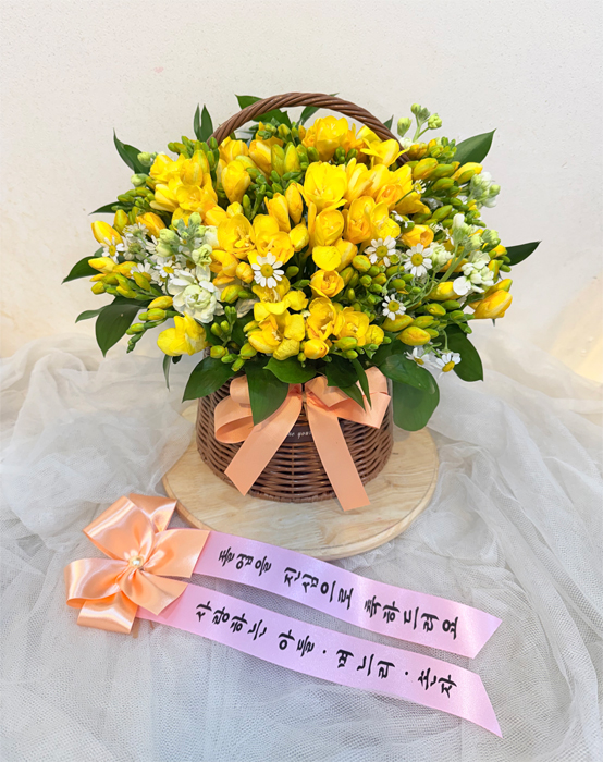 어머님이 시립중학교 과정을 무사히 마치셨어요. 오늘이 졸업식이었는데 저희가 해외거주중이라 소중한 순간을 함께 할 수 없어서 아쉬웠어요. 대신 어머님이 좋아하시는 프리지아를 보냈습니다. 너무 예쁘고 정성스럽게 꽃바구니를 만들어주셔서 어머님께서 행복해하셨어요. 저희 마음이 잘 전달된것 같아 기뻐요. 감사합니다!!!