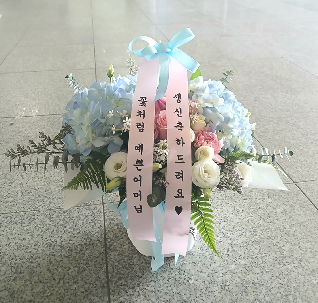 수국 장미 바구니