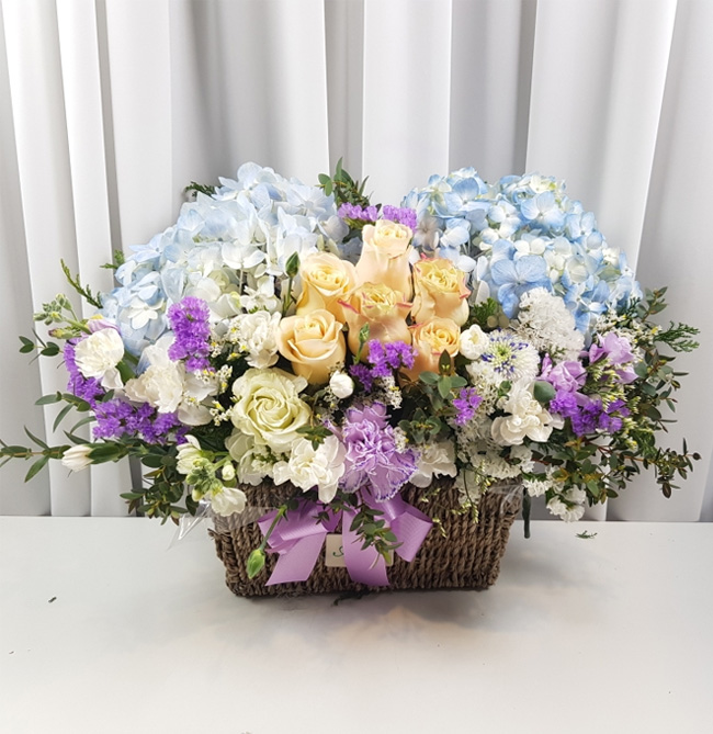 수국 장미 바구니