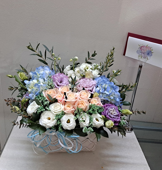 수국 장미 바구니