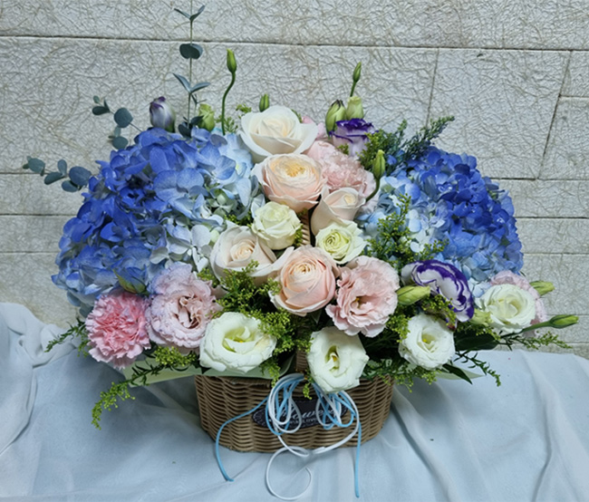 수국 장미 바구니