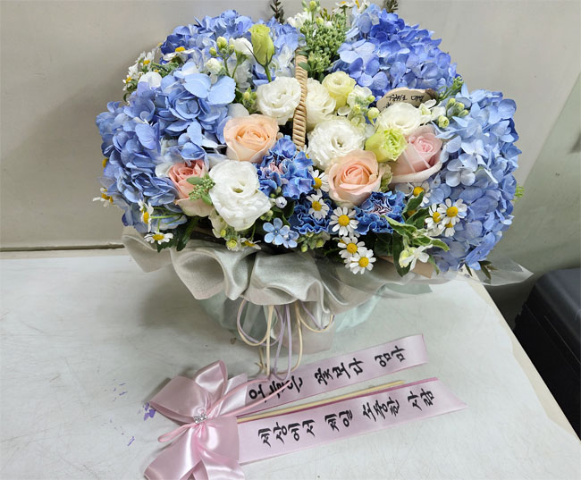 고급 포장 푸른 수국바구니