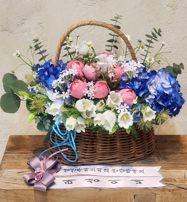 수국 장미 바구니