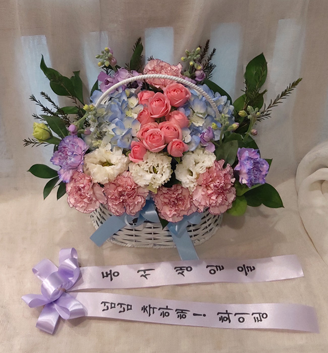 수국 장미 바구니
