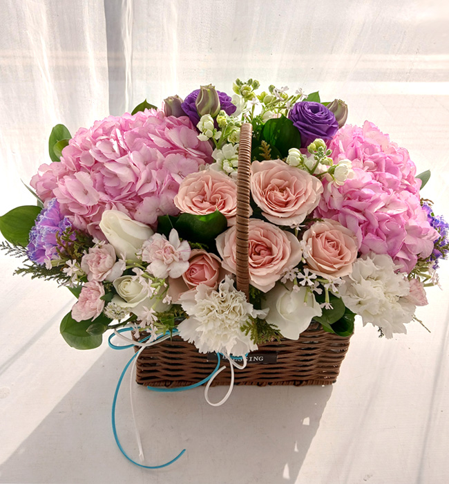 수국 장미 바구니